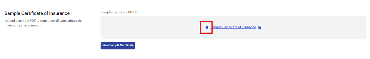 - Click on the pdf icon located to the left of the Sample Certificate of Insurance title